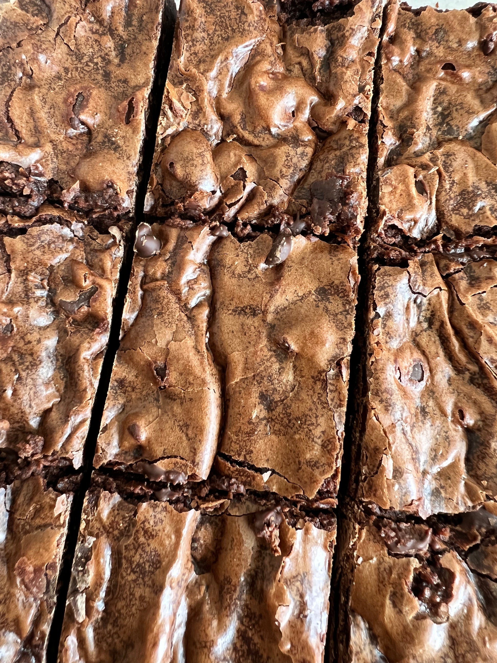 Decadent, thick, chocolate fudgey brownies filled with chocolate chunks.