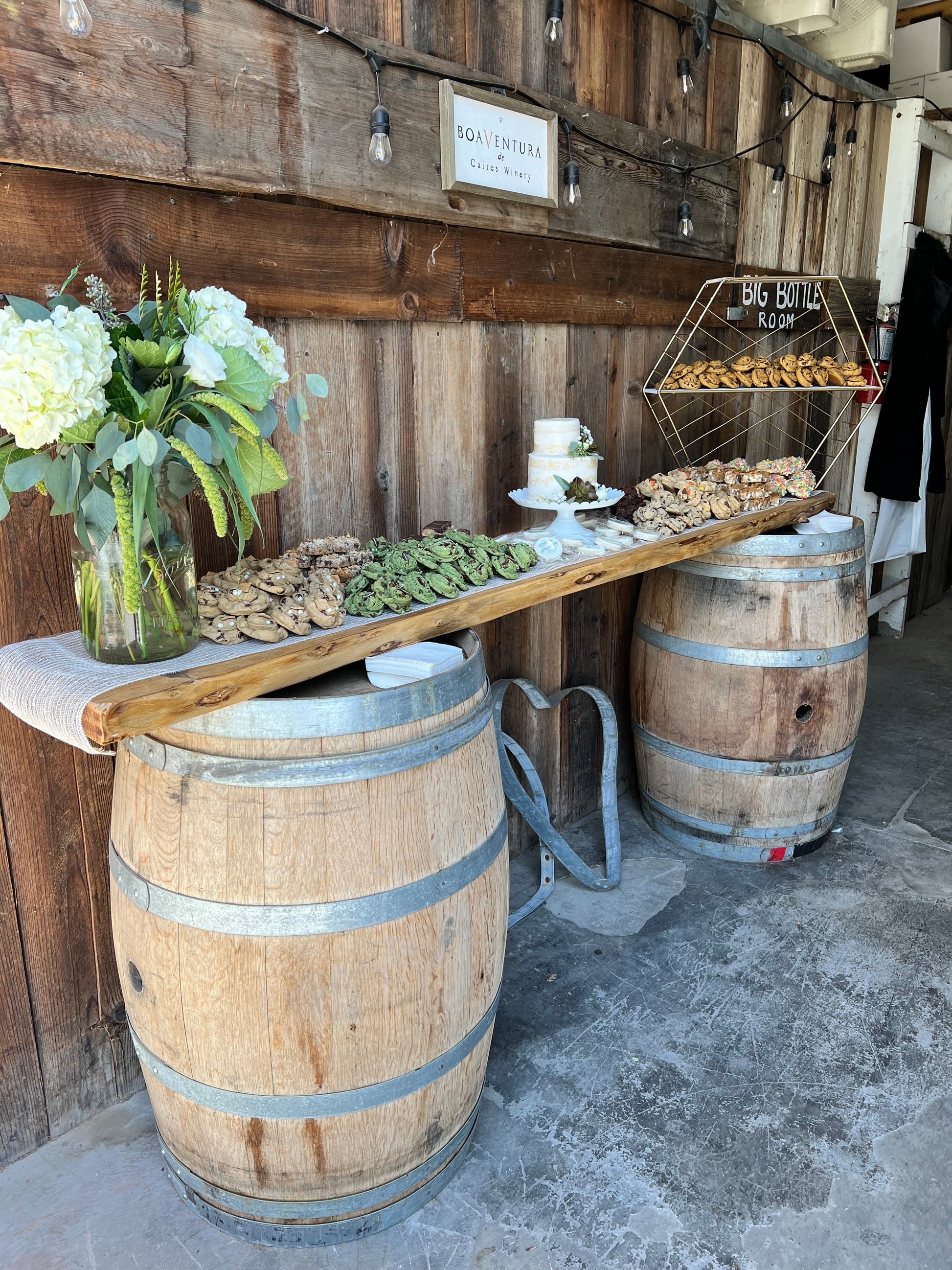 The Gold Catering Package offers professional setup and breakdown, allowing you to choose up to three flavors from our Petite Specialty Scoop Cookies and one dessert bar option, serving up to 4.5 dozen guests. Ideal for events requiring sophisticated presentation and delectable treats, this package includes the arrangement and removal of the dessert cart or dessert bar on a selected table or surface, white platters, and ready-to-serve desserts. Service covers travel within the Livermore area, with any leftovers boxed for your convenience.Ā